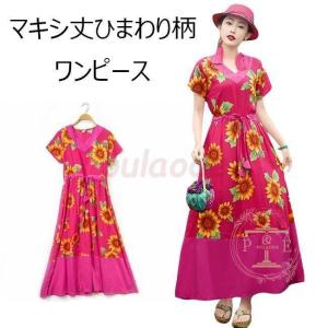 マキシワンピース 夏 花柄のワンピース Aライン フレア マキシ丈 お出かけ デート ラウンドネック ノースリーブ ひまわり柄の通販はau Pay マーケット Gratias